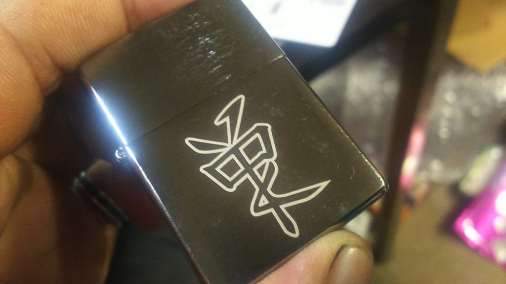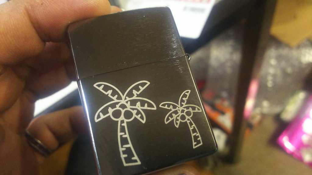 ライターにお客様の会社ロゴマークとヤシの木をレーザー刻印しました。